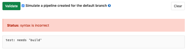 Not all pipeline configuration issues can be found by the basic CI lint validation. You can simulate the creation of a pipeline for deeper validation that can discover more complicated issues.