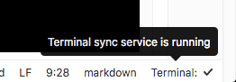 After you have configured the web terminal for file syncing, then when the web terminal is started, a Terminal status is visible in the status bar.